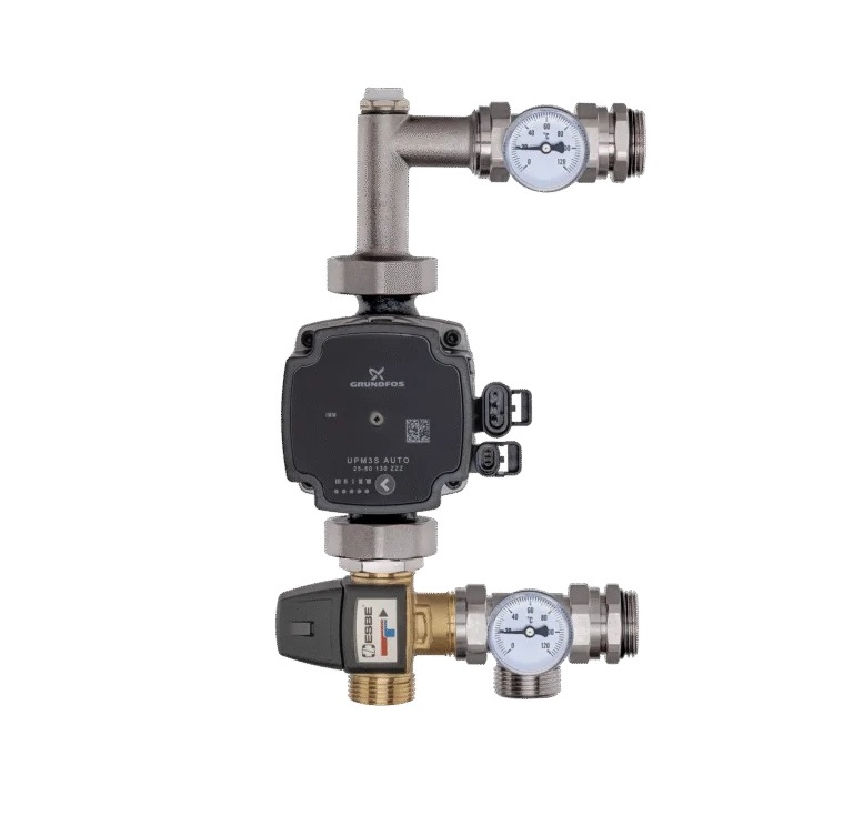 Zestaw mieszający niklowany pompa GRUNDFOS UPM3 25-70/130 + zawór trójdrożny ESBE (20-50°C), KVS 3.4 z odpowietrznikiem automatycznym